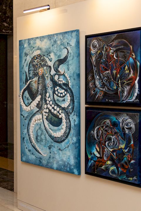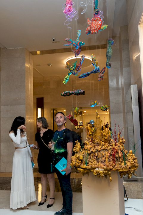 La soirée s’est poursuivi avec le vernissage de l’exposition « Les Trésors Abyssaux : la Magnificence des Profondeurs », une plongée artistique dans les mystères et la splendeur des océans. Prévue du vendredi 24 mai au vendredi 14 juin 2024, cette exposition collective et multidisciplinaire met en lumière les merveilles cachées des profondeurs marines à travers une variété de formes artistiques, incluant peintures, sculptures et installations.