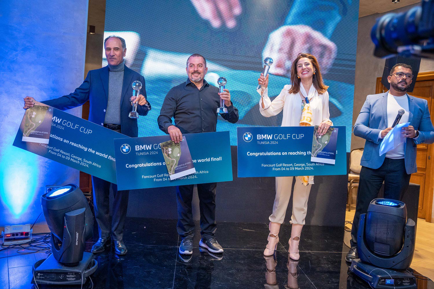 La cérémonie finale de remise des prix, sous la présidence de M. Mohamed Ben Jemâa, Directeur général de Ben Jemâa Motors, a consacré les lauréats émérites du tournoi, à savoir Mme Inès Abdellatif, M. Karim Garnaoui et M. Maher Bouchamaoui. Ces champions ont eu l’insigne privilège de représenter avec distinction la Tunisie lors de la prestigieuse finale mondiale de la BMW Golf Cup, qui a eu lieu le 4 mars 2024 en Afrique du Sud.