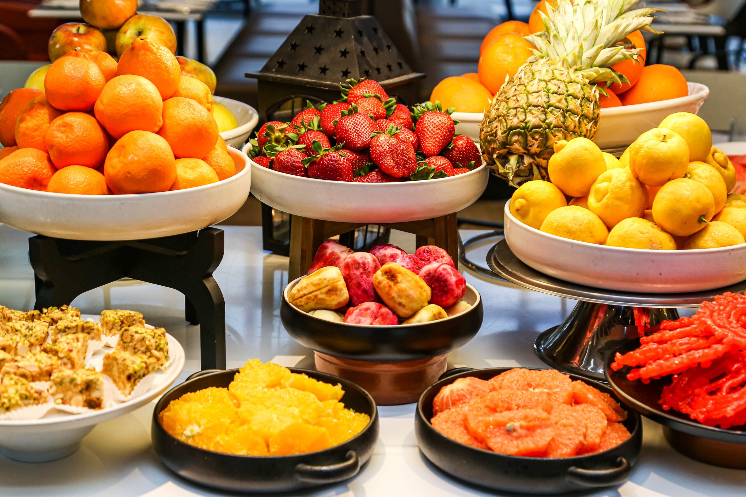 Les amateurs de desserts seront ravis par la grande variété d’options allant des fruits de saison aux desserts traditionnels Tunisiens, et aux gâteaux crémeux et gourmands, incluant des nouveautés élaborées par notre équipe pâtissière.