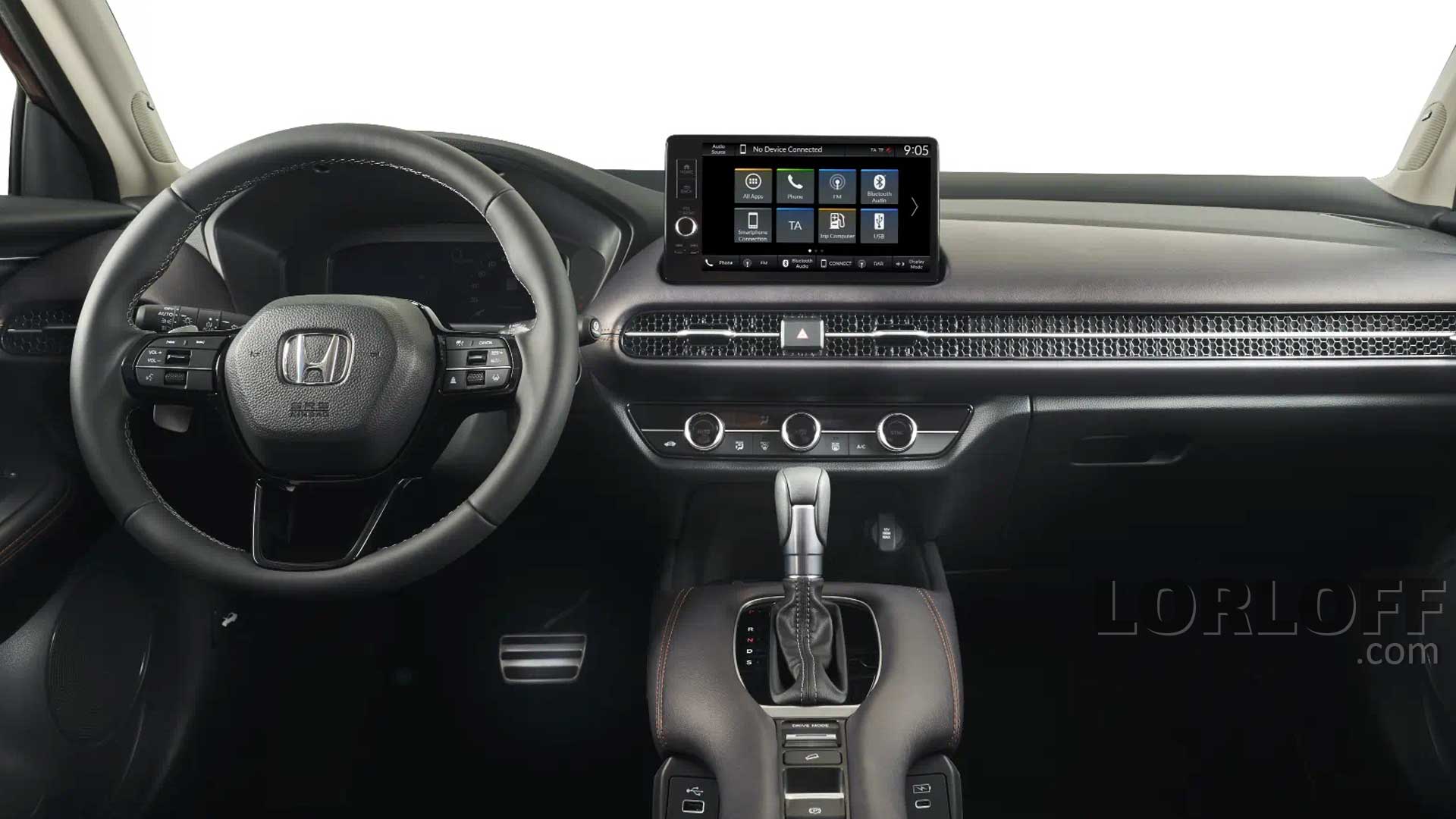 Le Honda ZR-V est équipé de cuir marron et de surpiqûres orange, assorties aux panneaux de porte, à la console centrale et aux bords du tableau de bord. Les surpiqûres françaises et les sièges en cuir perforé sont saisissants et mettent en valeur l’intérieur haut de gamme.